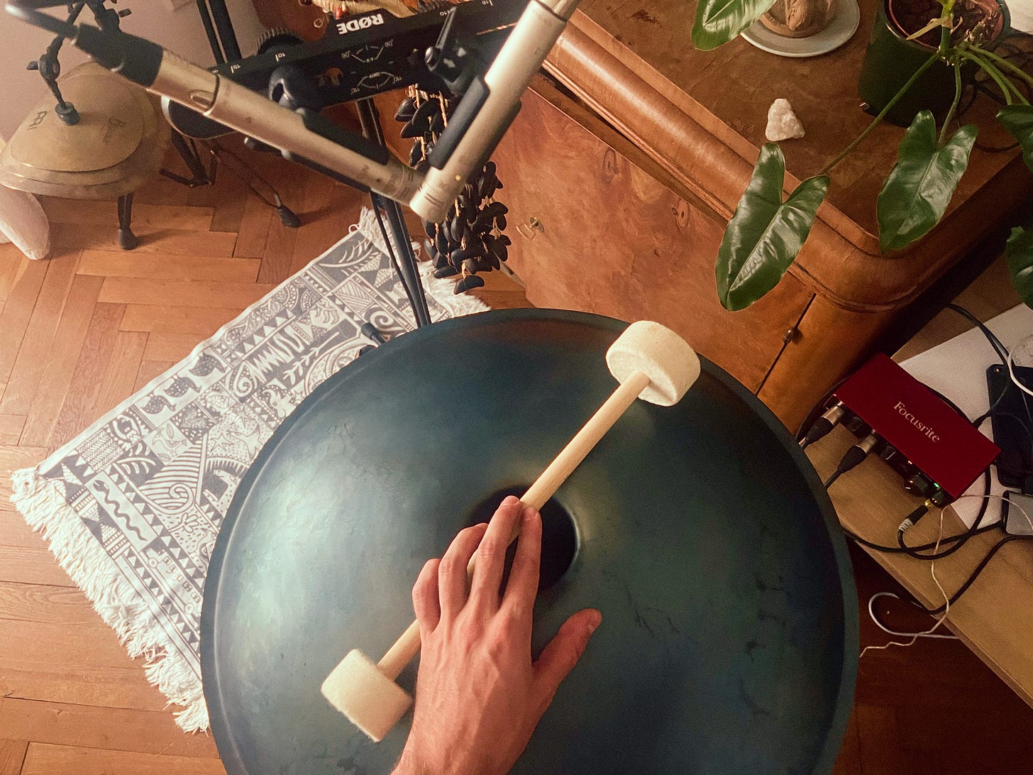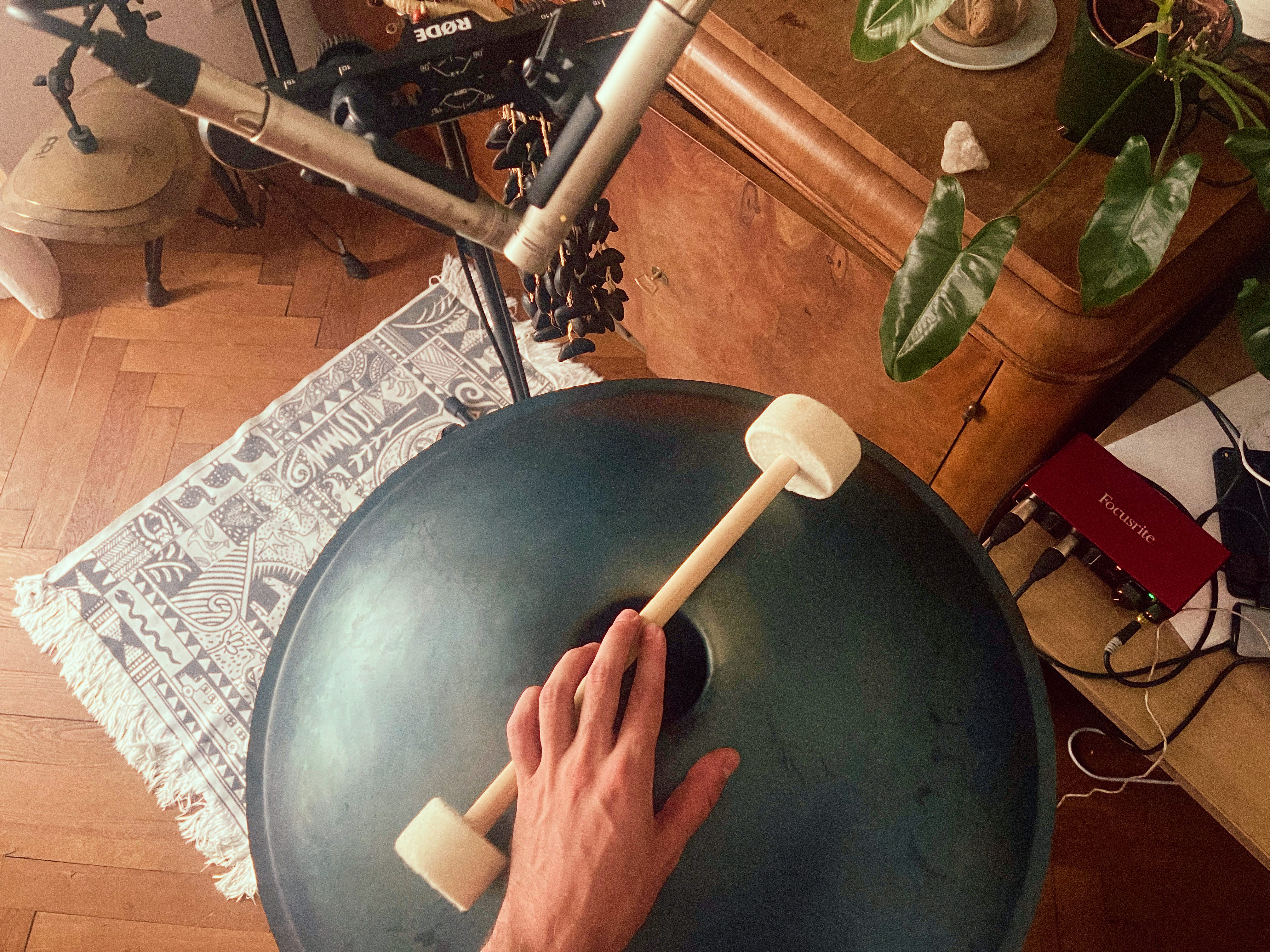 Flitz&Suppe, who had long been interested in the instrument but never owned one, suggested that bert cussion record a full hang drum session if he ever played and send it over for sampling. bert later did exactly that and shared the recorded stems. The hang drum can be heard most clearly in the intro, forming the foundation for the track that followed.