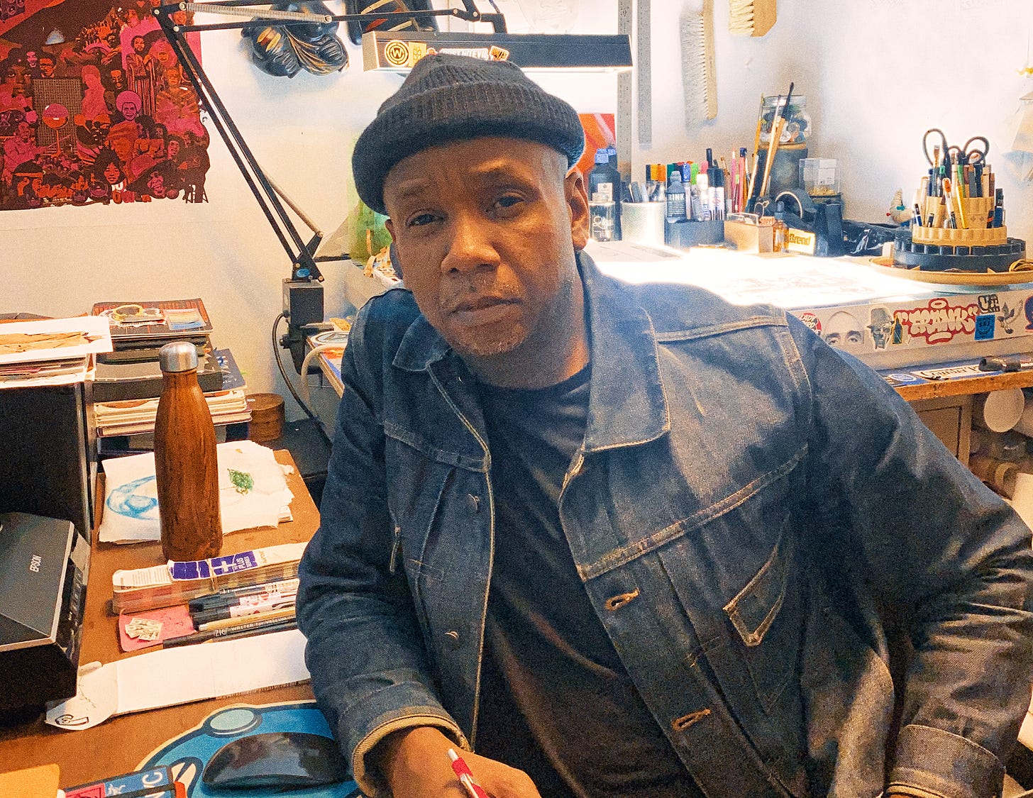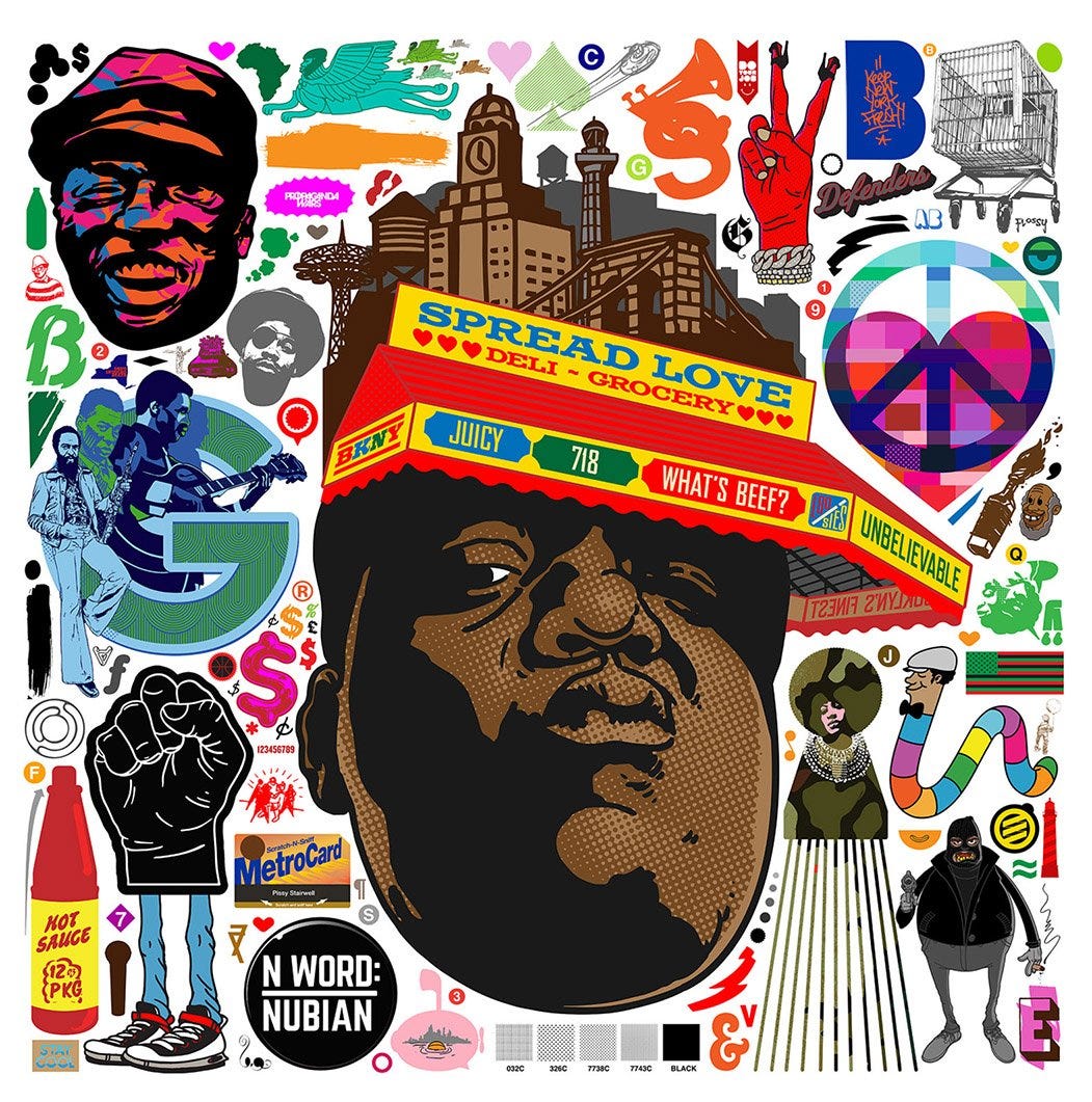 Nike and Jordan Brand brought him in as the featured artist for the 2013 Black History Month collection. He’s also designed album covers for Pete Rock, DJ Spinna, Yasiin Bey, and tour merch for Maroon 5. From 2020–2023 he served as creative director for Spike Lee’s brand, Spike’s Joint.